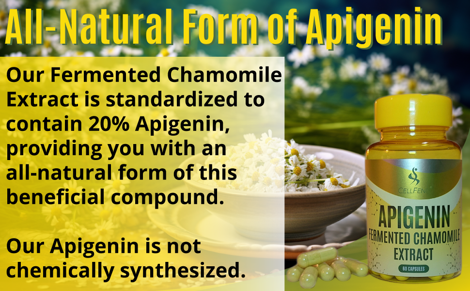 Our all-natural standardization process is a testament to our dedication to quality, ensuring that you receive a product that is both potent and pure, reflecting the true essence of nature in every capsule. Whether you're seeking to enhance your wellness routine or explore the benefits of Apigenin, our Fermented Chamomile Extract stands as a beacon of natural excellence and reliability.