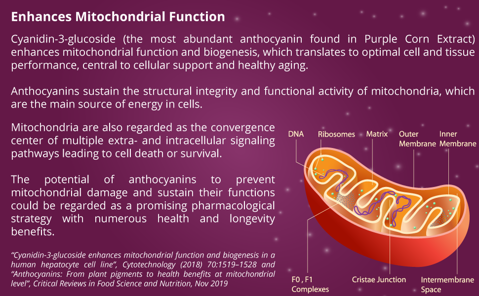 There is well-documented research on Purple Corn and anthocyanins and their role in health and longevity. For a deeper understanding of the science, direct links to a selection of research articles and clinical tests can be found on our "Research" page.