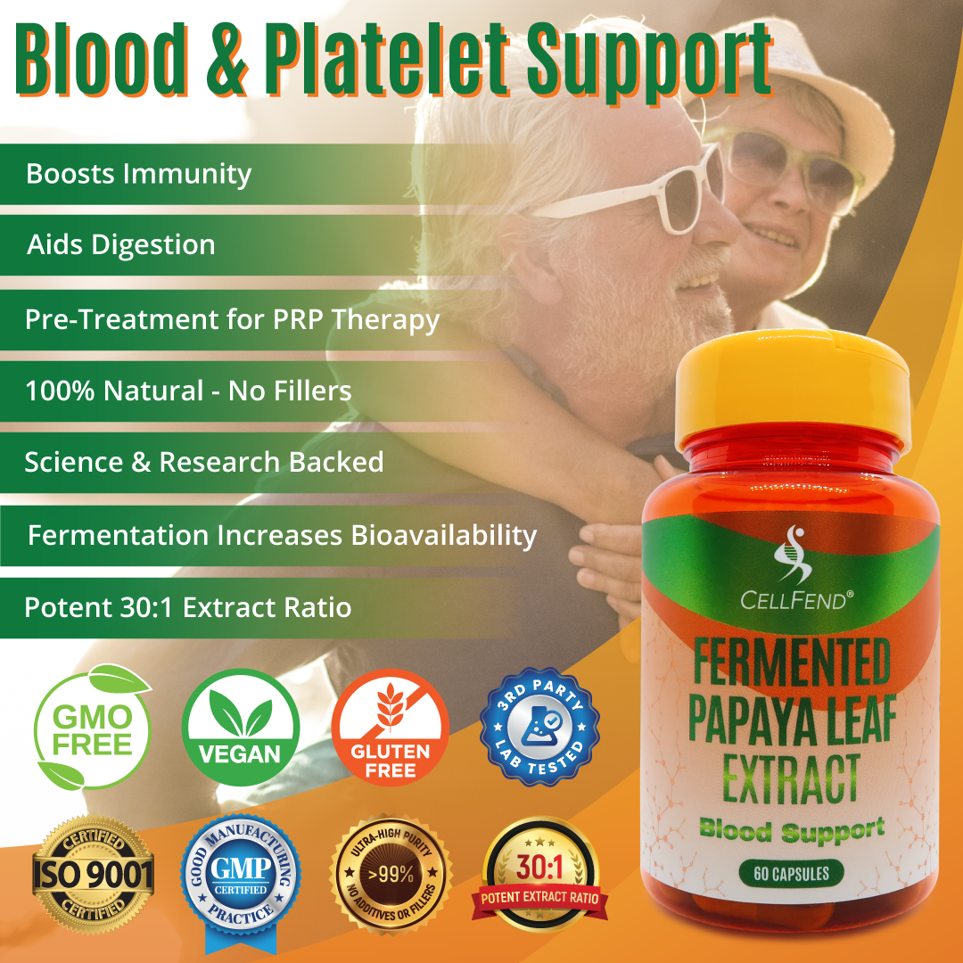 Our Fermented Papaya Leaf Extract is a 100% natural, potent blood & platelet support supplement. It's also great to use as a pre-treatment for Platelet Rich Plasma (PRP) therapy, to maximize its benefits, as it helps with platelet health.